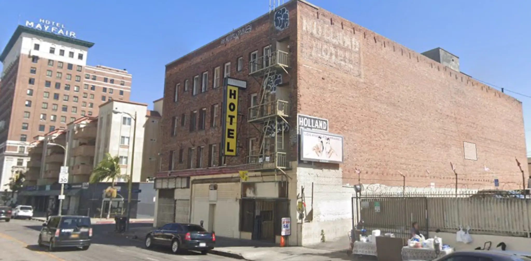 1404 W. 7th Street, aka the Holland Hotel, was built in 1924. Like most older hotels in Los Angeles, it's had its share of tragedies and seen its fortunes change along with the surrounding neighborhood.