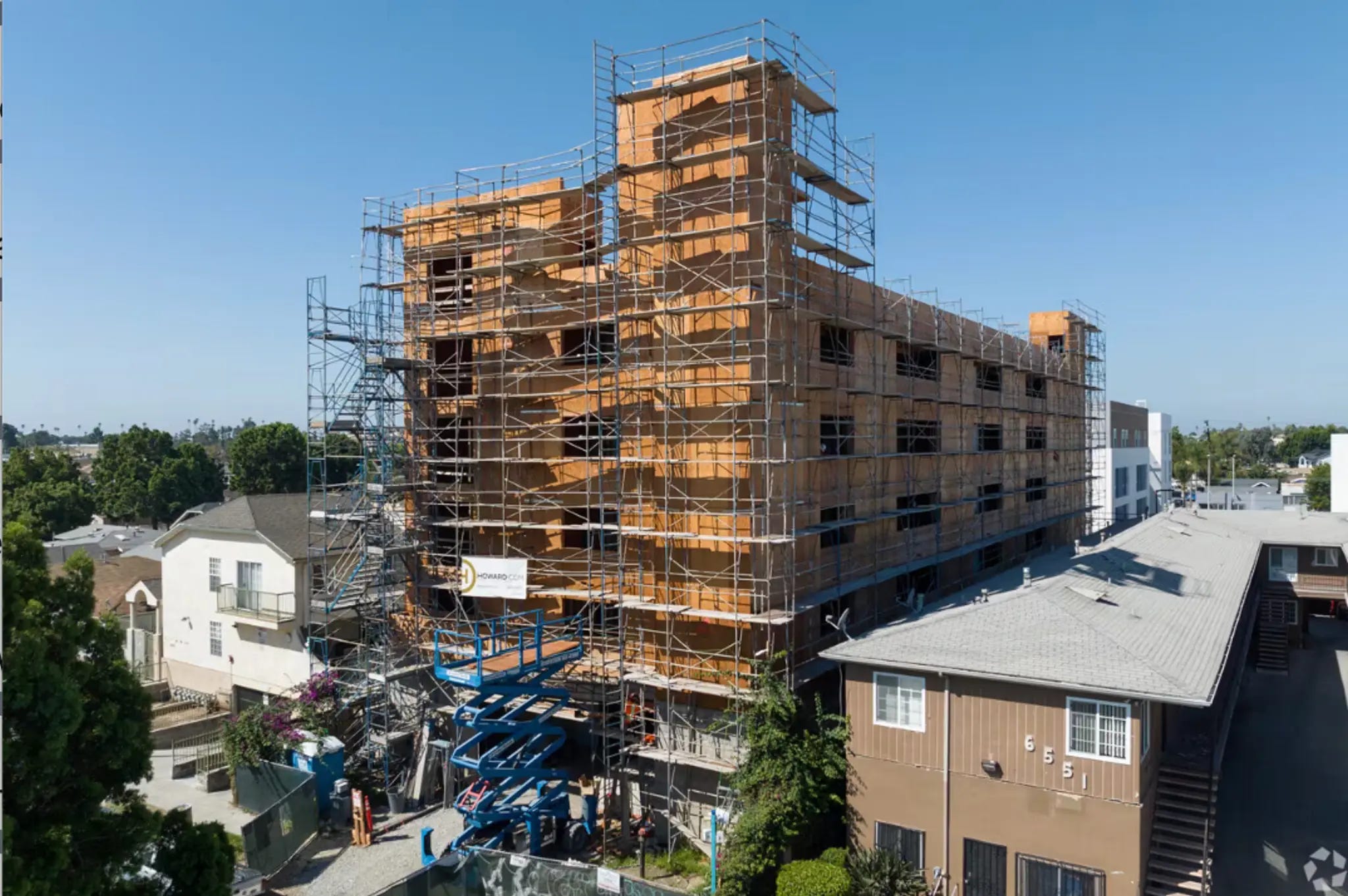 The bungalow court's affordable units are gone, there is a hulking frame of a building (and possible fire hazard) in its place, and we expect the displaced tenants to live where, exactly?